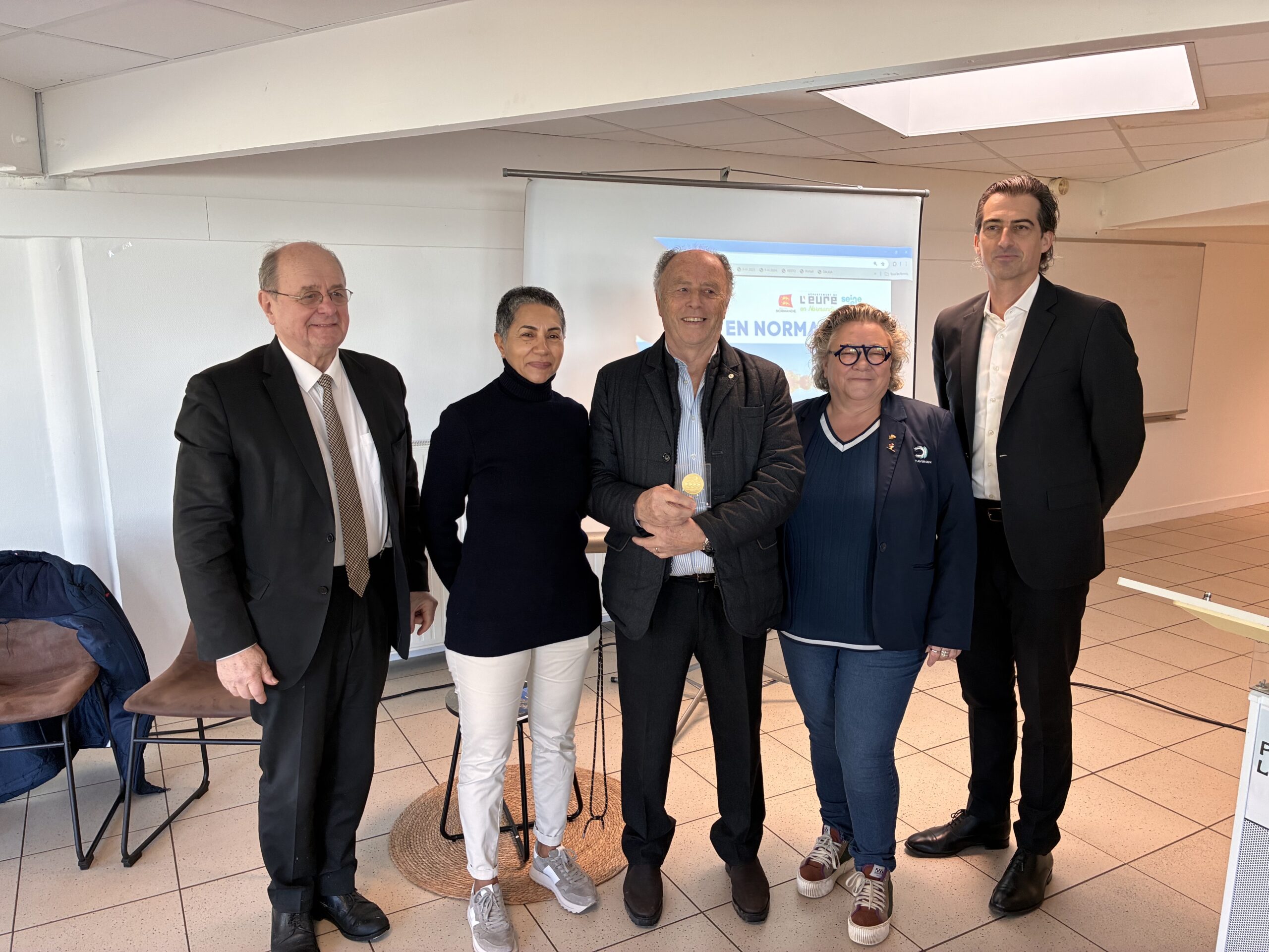 Cette visite s’est tenue en présence de Aline Louisy-Louis, Vice-présidente de la Région Normandie en charge de la Jeunesse, du Sport et du Nautisme, Bernard Leroy, Président de l’Agglomération Seine-Eure, Bénédicte Ouvry, Présidente de la Ligue de Normandie et membre du Bureau fédéral et Patrick Madroux, acteur historique du développement du site.