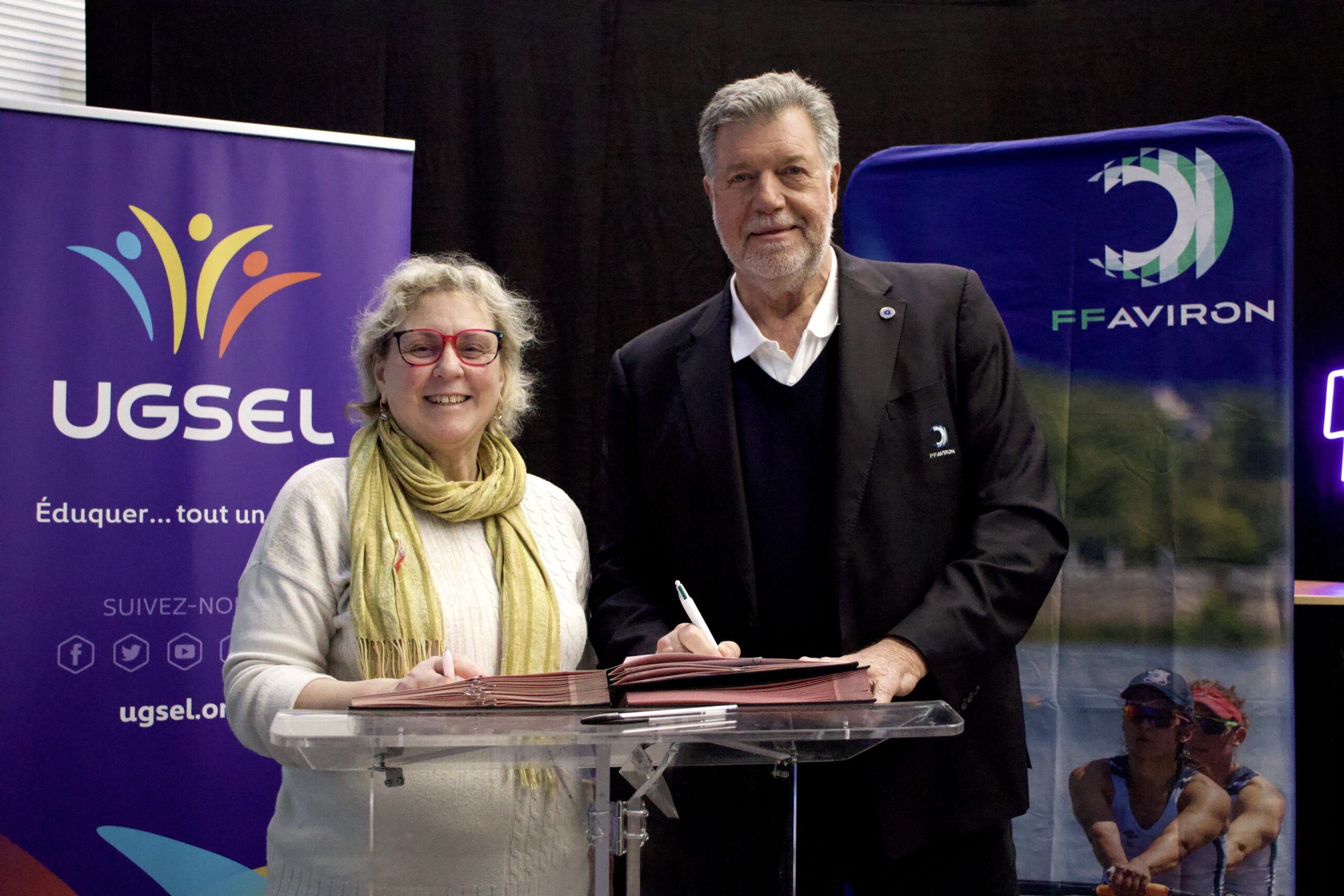 La signature s’est tenue le vendredi 30 janvier, lors des championnats de France scolaires d’aviron indoor, en présence de nombreux collégiens et lycéens venus participer aux épreuves. Un cadre symbolique, au cœur de la pratique et de la jeunesse, pour marquer le lancement de cette collaboration. La convention a été signée par Christian Vandenberghe, président de la Fédération Française d’Aviron, et Laure Margan, vice-présidente de l’UGSEL.